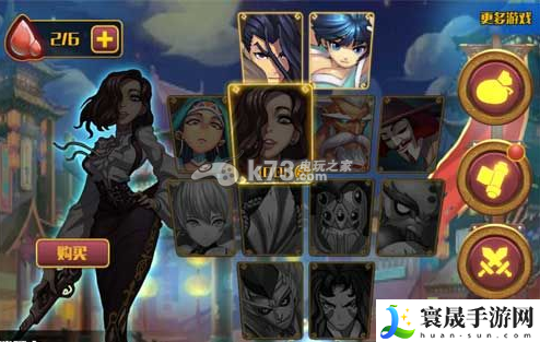 金币满足条件时,选择对应人物,点击左侧【购买】按钮完成解锁;
