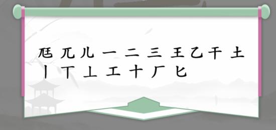 1、【尫】找出17个字,分别是尫、兀、儿、一、二、三、王、乙、干、土、丨、丄、丅、工、十、厂、匕。