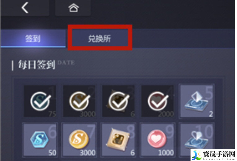 2、进入活动页面,可以看到签到和兑换所,点击第二个兑换所选项。