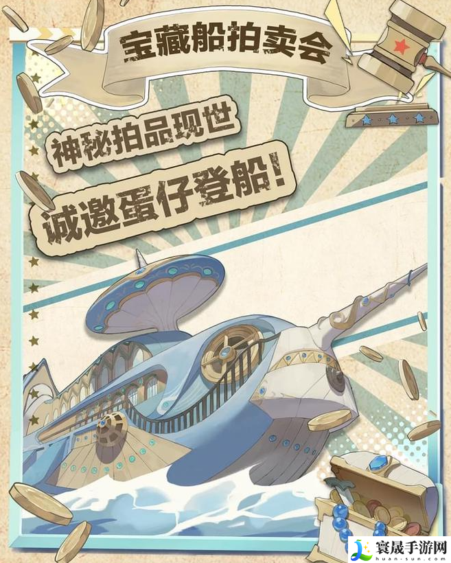 2、在宝船拍卖夜派对季,一艘满载着深海珍奇拍品的宝藏船在众目睽睽下破浪而来,缓慢停靠在蛋仔岛的海岸。