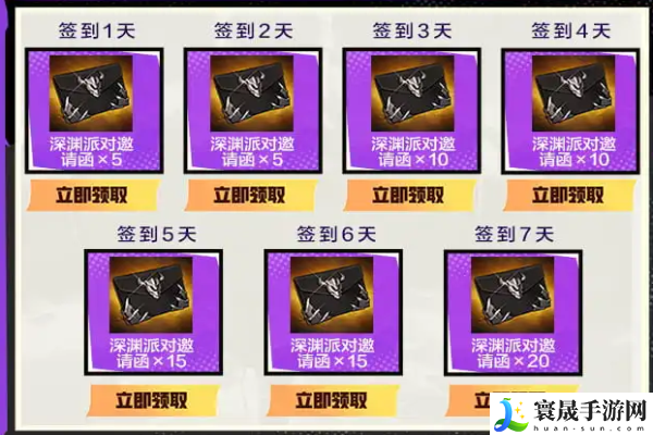 3、在5.14—5.20期间,每日打卡签到即可领取深渊派对邀请函。