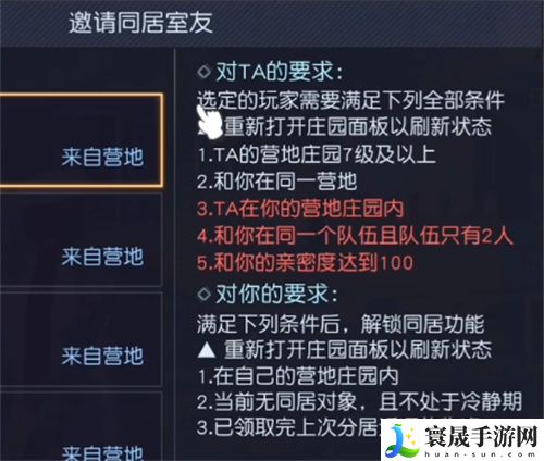 在游戏中,大家是可以同居的,不过游戏中目前只支持两人同居,如果大家想要同居,那么大家就需要满足以下条件: