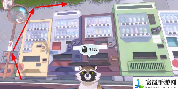3、上去后,在第四个自动售货机的顶端,就会发现一条蓝色的变色龙,和其进行对话即可