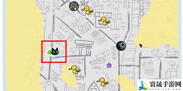 1、打开游戏地图,前往红色方框标记的位置,具体位置如图所示。也是小水道浣熊所在的位置。