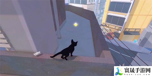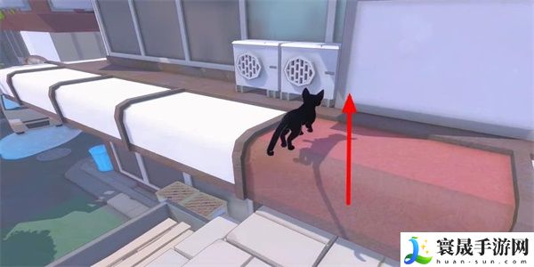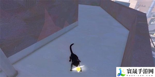 4、爬到阳台这里,即可看到一个黄色的胶囊,上前点击拾取。