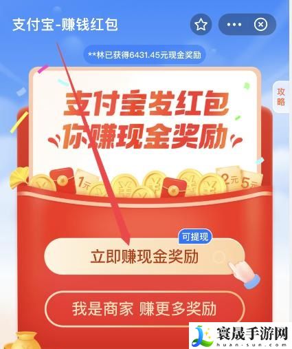 3、在打开的赚钱红包页面中,点击“立即赚现金奖励”。