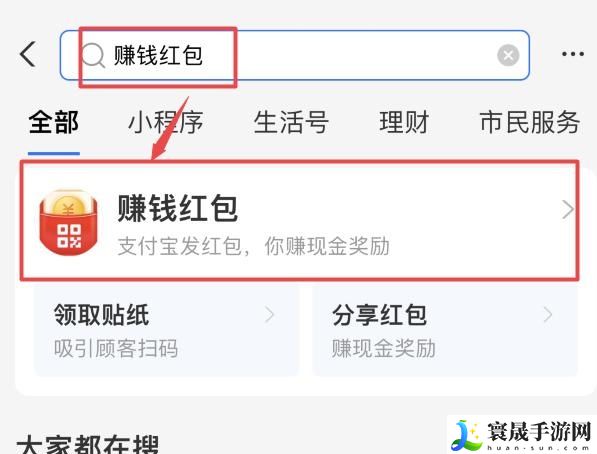 2、在搜索框中输入“赚钱红包”进行搜索,然后在搜索结果中,点击打开“赚钱红包”项目。