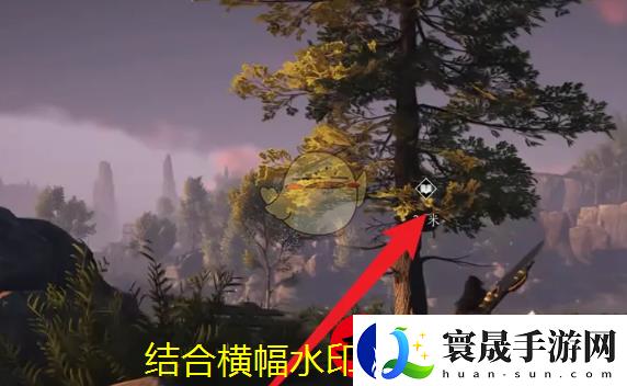 1、首先,打开游戏地图,锁定图中所示的树梢目标。