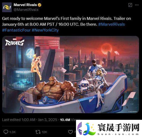 此外官方还表示新英雄的预告片将于1月6日放出,不过目前并未透露神奇四侠中的四位英雄将一同亮相还是逐个登场。