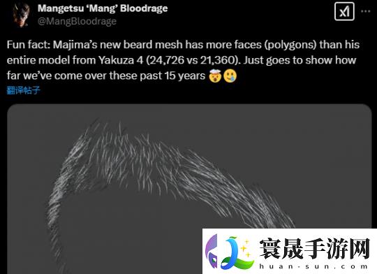 世嘉旗下经典游戏《如龙8外传》已经于2月21日发售,登陆PC(Steam/Microsoft Store)/PS5/PS4/Xbox Series X|S/Xbox One,日前有玩家分享了游戏细节,主角真岛的胡子多边形数量已超《如龙4》时的角色全身。