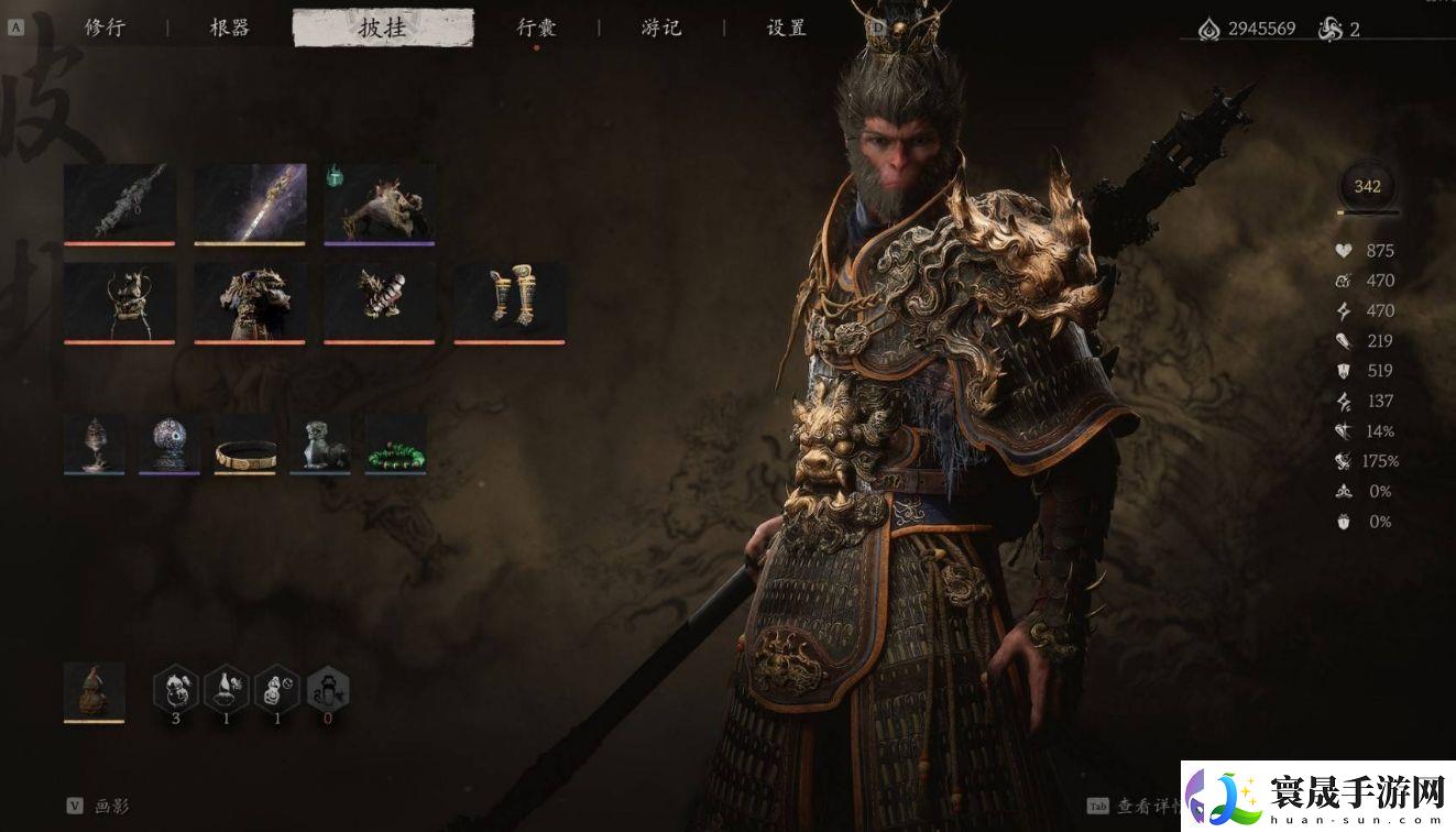 没了磬锤的棍势获得识破打起来没那么爽快流畅,所以披挂跟精魄我选择能攒棍势的用,地狼跟藏风两件让混铁棍打起来棍势也不会太缺,头饰三山,手臂赭黄,再打出boss小硬直的情况下,我四豆戳棍都是不打凤穿花的,选择蓄力直出,吃上赭黄的暴击率加成。