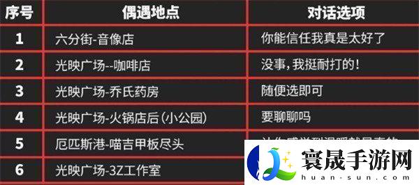 6、最后小编再附上一个伊芙琳偶遇事件的正确对话选项,选择对的事件可以有效帮助提升伊芙琳的好感。