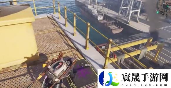 玩家进入到波光镇,直接骑着摩托车进门,进门之后左转,可以来到大仓库门口。靠左手边就有一个向上的楼梯,很快就能进入到船的平台。在油桶的边上就可以看到南瓜泥沙拉。在这个过程中还会遇到秃鹫,将其打败就可以获得1号武器箱。