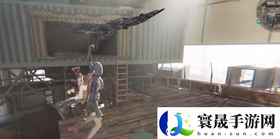 玩家可以从楼顶的缺口下来,直接绕到仓库的对面,在货架下面还可以找到第4个装备箱。接着朝南的光柱走过去,如果没有提示权限互动,则意味主线还没有推进。在描完锚点之后可以进入到白色大仓,走上2楼之后拿到最后一个武器箱。